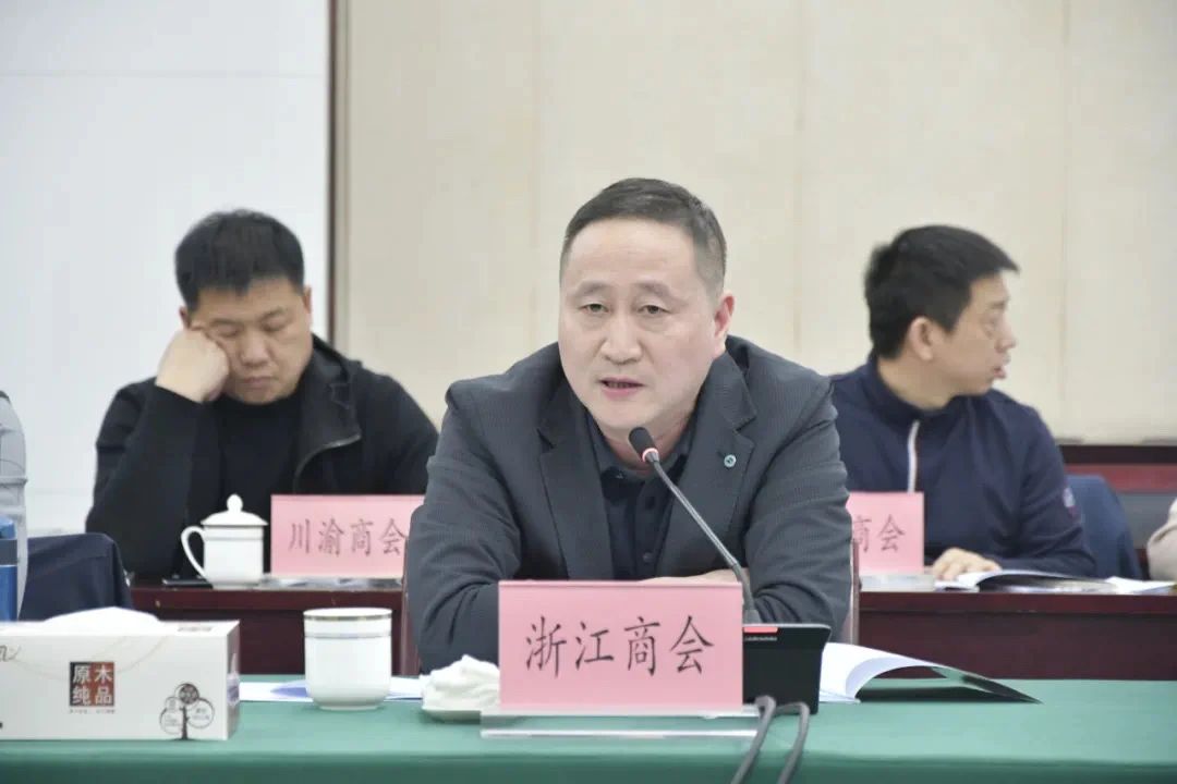 东营市浙江商会会长高博作了交流发言,在发言中高会长提到,实体经济发展困难重重,产业升级和结构优化亟需加强,2024年,数字经济在全球范围内持续蓬勃发展,成为驱动创新和经济增长的重要引擎。目前,以数字经济为支撑的新农业、新商业和新能源等高新产业,已在东营浙商企业转型中快速而又稳健地起步,下一步将围绕区委提出的“六条赛道”发展方向,从高端装备、高端化工、未来产业、文旅康养、城市经济、现代农业等领域积极整合资源,主动探索商机,东营浙商将全力推动产业结构优化升级,发挥自身优势,为东营区的发展贡献自己的力量。